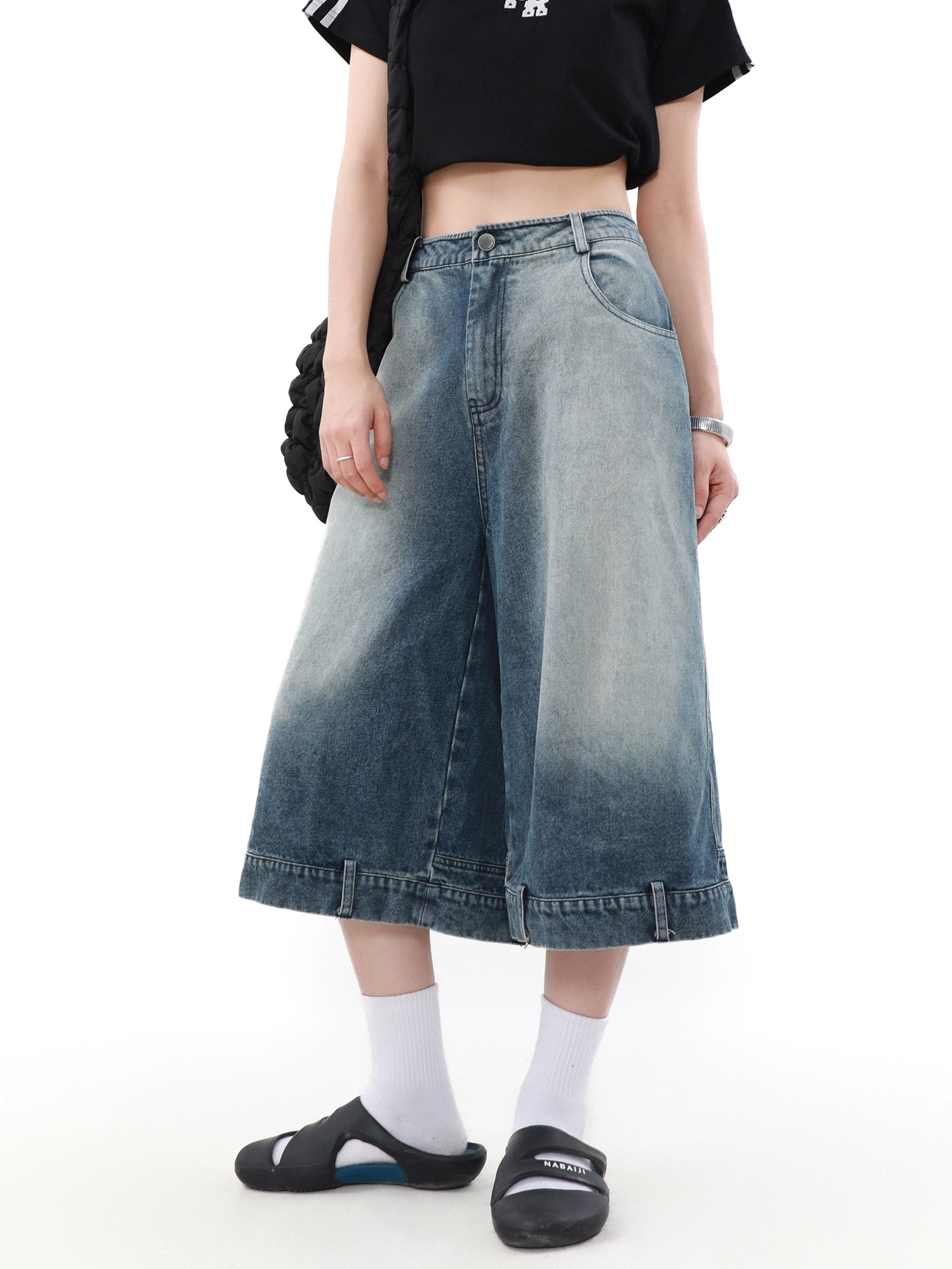 韓國質感漸層黑色七分褲