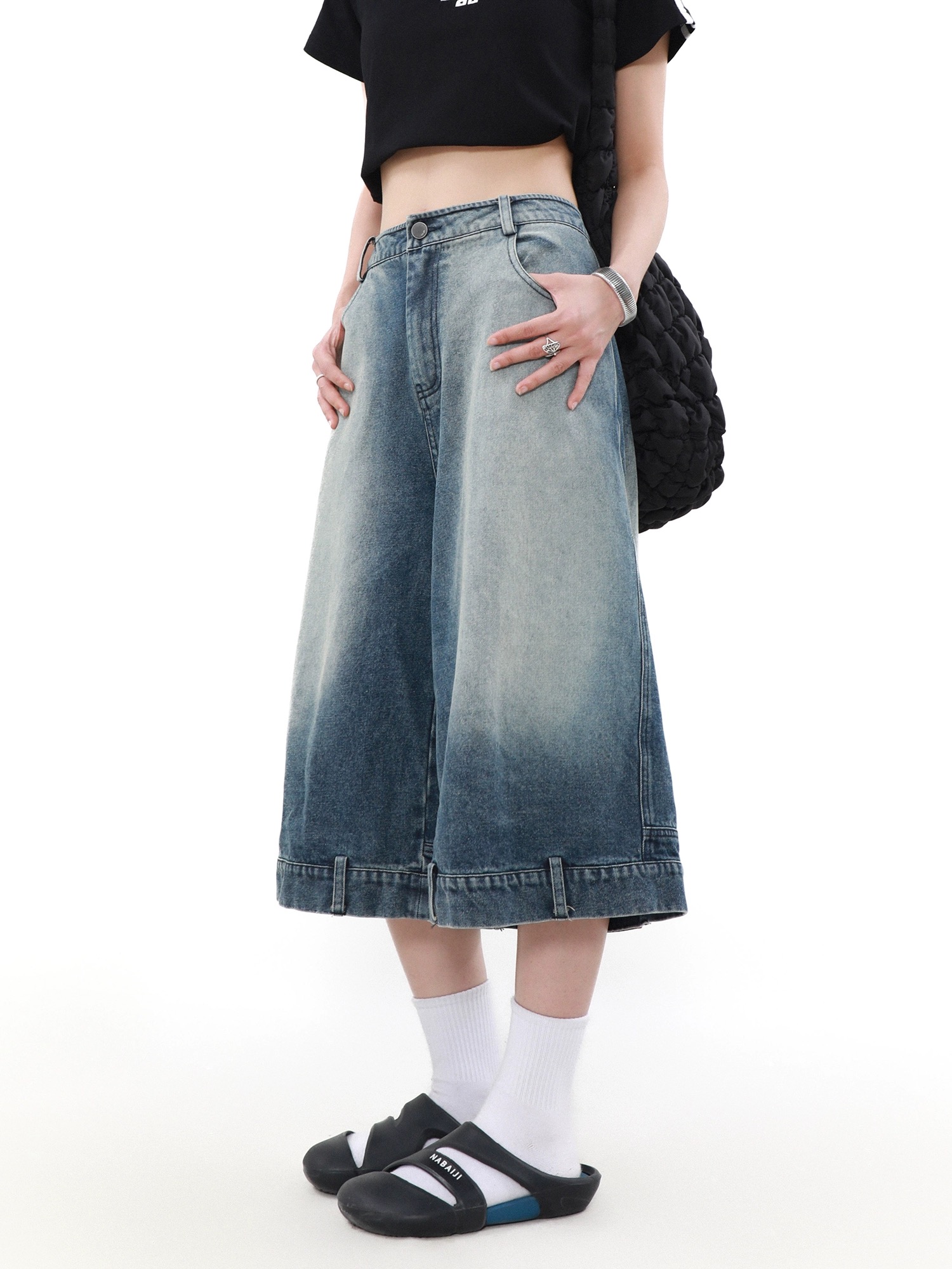 ♡韓國設計感反面七分牛仔褲♡