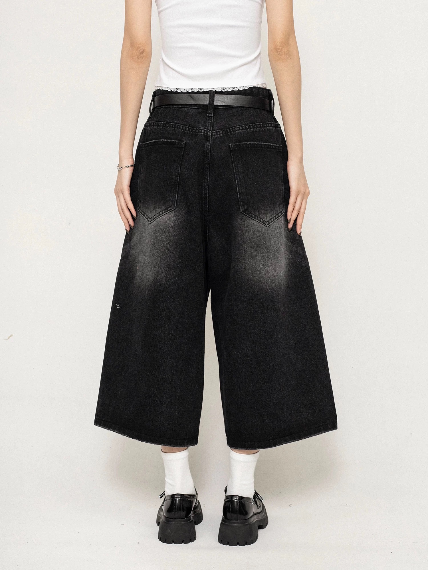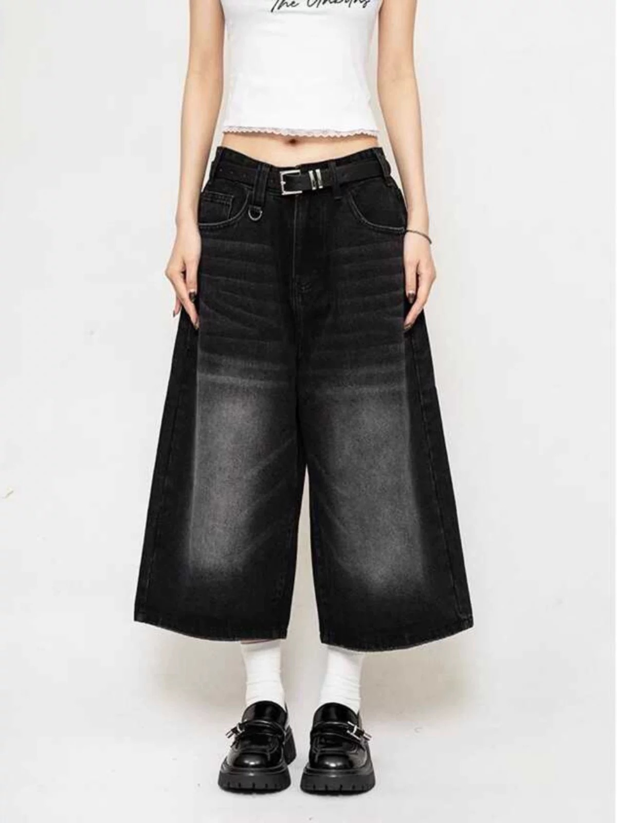 ♡韓國設計水洗黑灰七分牛仔褲♡